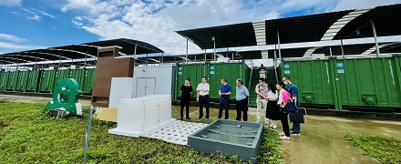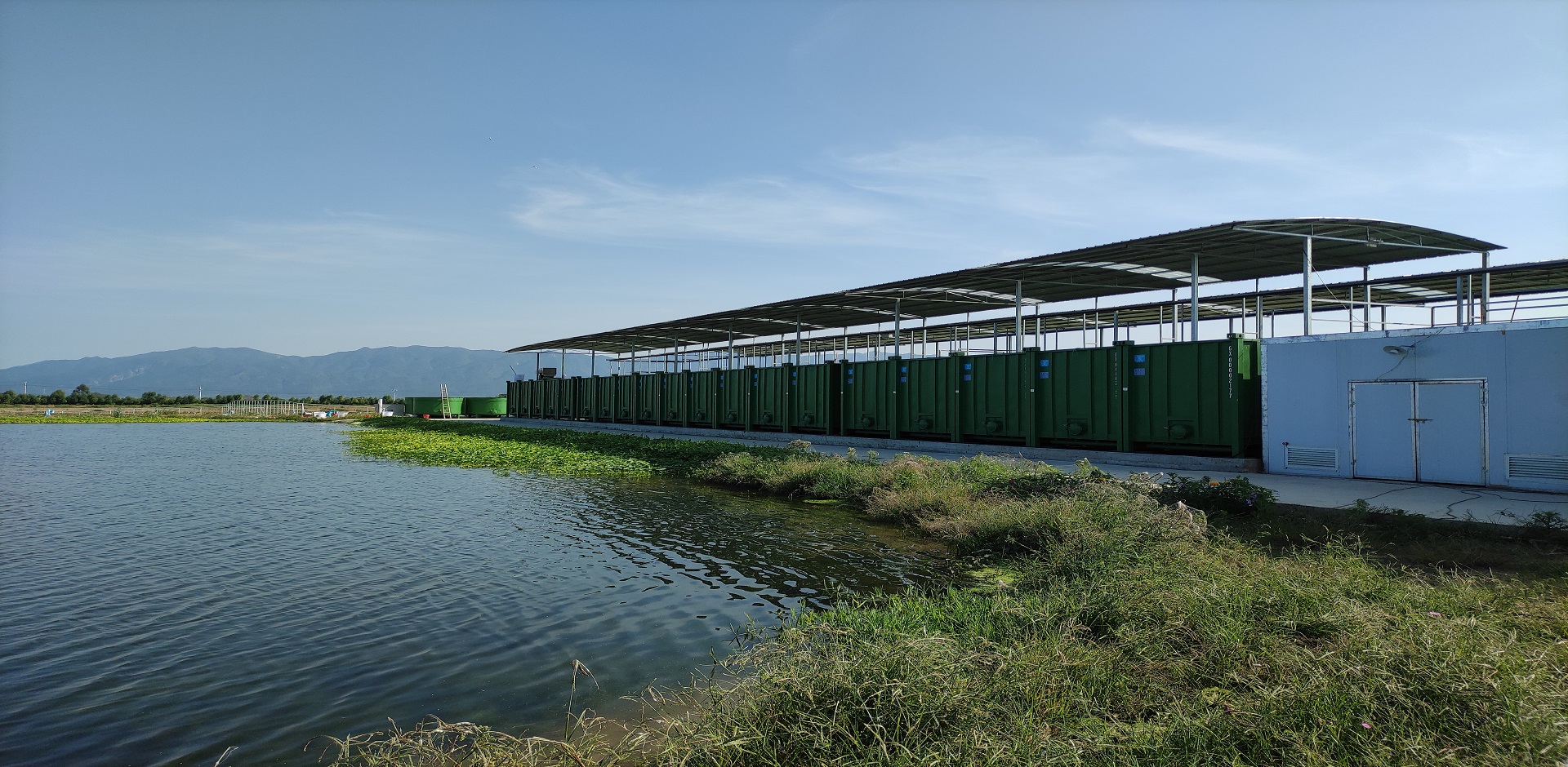 集裝箱式養(yǎng)殖系統(tǒng)采用 20 呎定制化“集裝箱”,尺寸是 6.1 米 *2.4 米 *2.8 米,養(yǎng)殖水體 25 立方米,占地面積為 15 平方米 ,配有納米增氧管(增氧)、出魚(yú)口(收魚(yú))、集污槽(排污)、天窗(觀(guān)察投喂飼料)、固液分離器(尾水處理)等功能構(gòu)件。